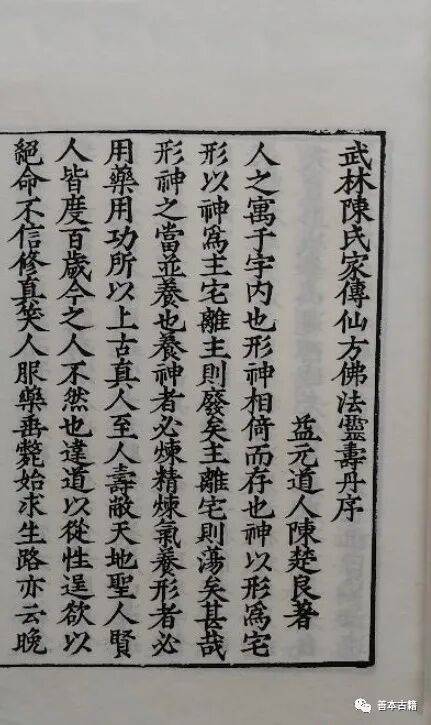 孤本《武林陈氏家传仙方佛法灵寿丹》(以下简称《灵寿丹方》)不分卷,明陈楚良撰于万历十六年戊子(1588),现藏北京大学图书馆。此书未见书坊堂号及刊刻之年,但有万历十六年戊子(1588)自序,可称为万历戊子序刊本。《灵寿丹方》主要内容可用三句话概括:讲一个故事,出一个药方,注释36种药物。