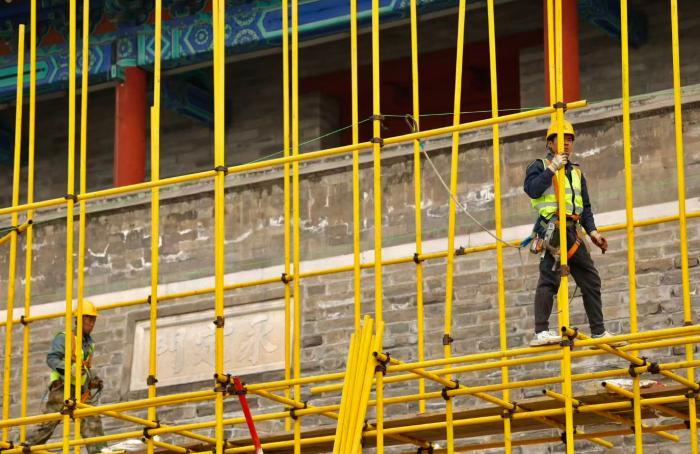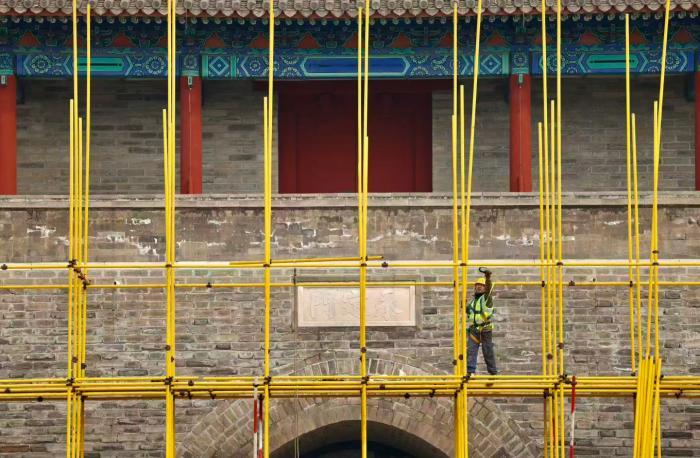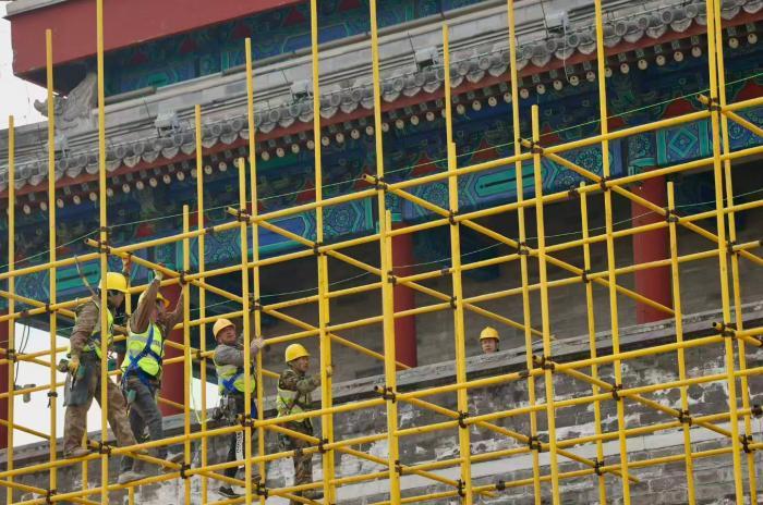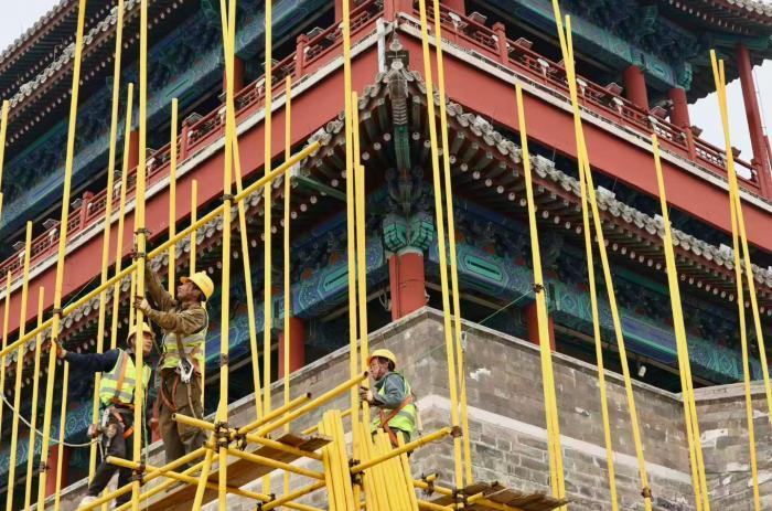 北京中轴线南端地标永定门城楼已搭设黄色脚手架,正式进入主体修缮施工阶段。北京青年报记者从东城区文旅局获悉,此次修缮是城楼2004—2005年原址复建以来的首次全面大修。